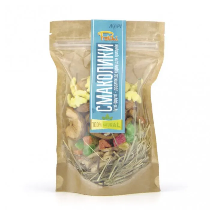 Смаколики для грызунов Тутти-фрутти №5 Фруктово-ореховый выделяются своей натуральностью и пользой. В отличие от других лакомств, эти продукты изготавливаются в Украине и привлекают сочетаниями вкусов, таких как фрукты и орехи, которые нравятся большинству грызунов.