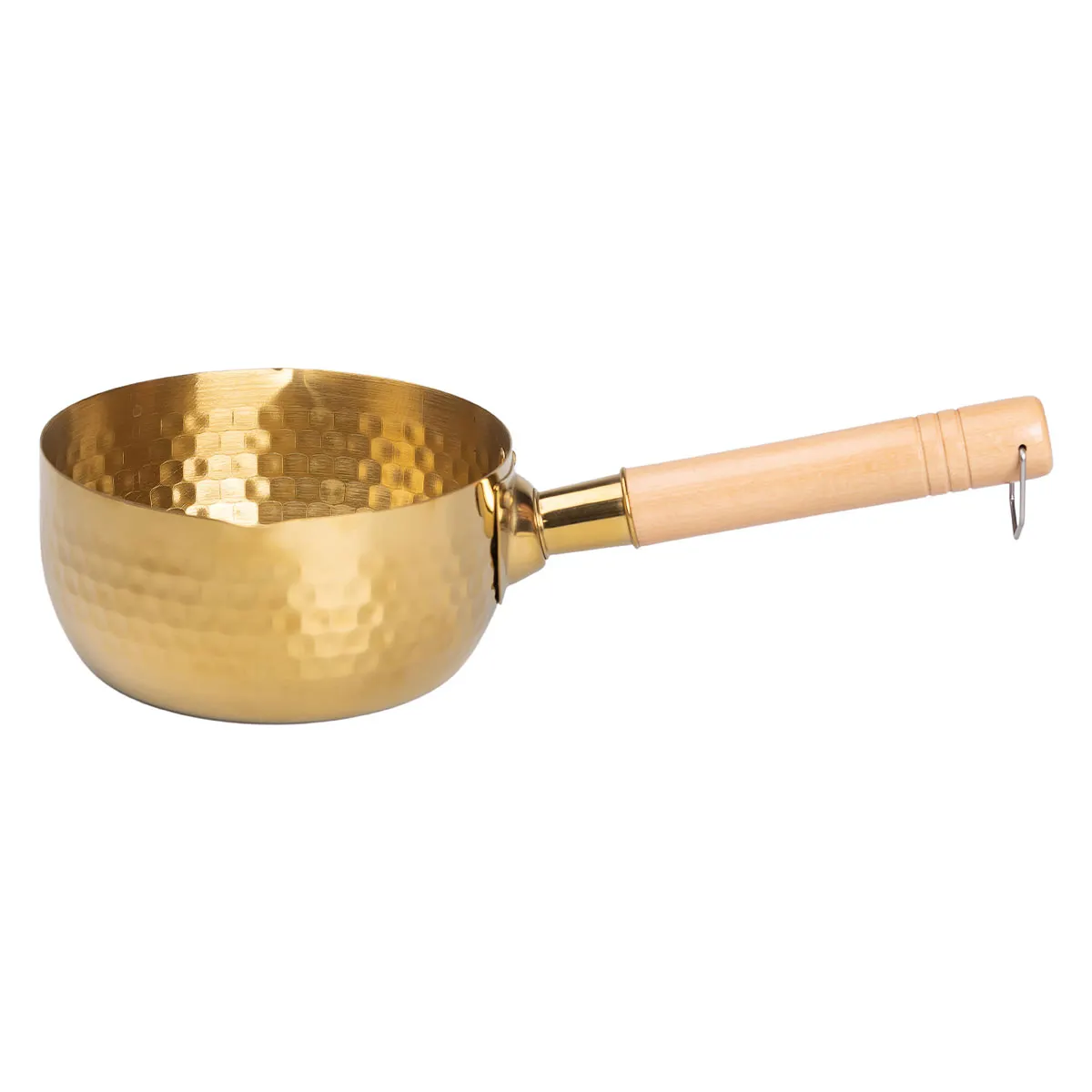 Главное отличие данной модели — сочетание качественной нержавеющей стали и деревянной ручки, которые придают изделию как функциональность, так и эстетическую привлекательность. Наличие сливного носика облегчает использование и добавляет удобства в повседневной готовке.