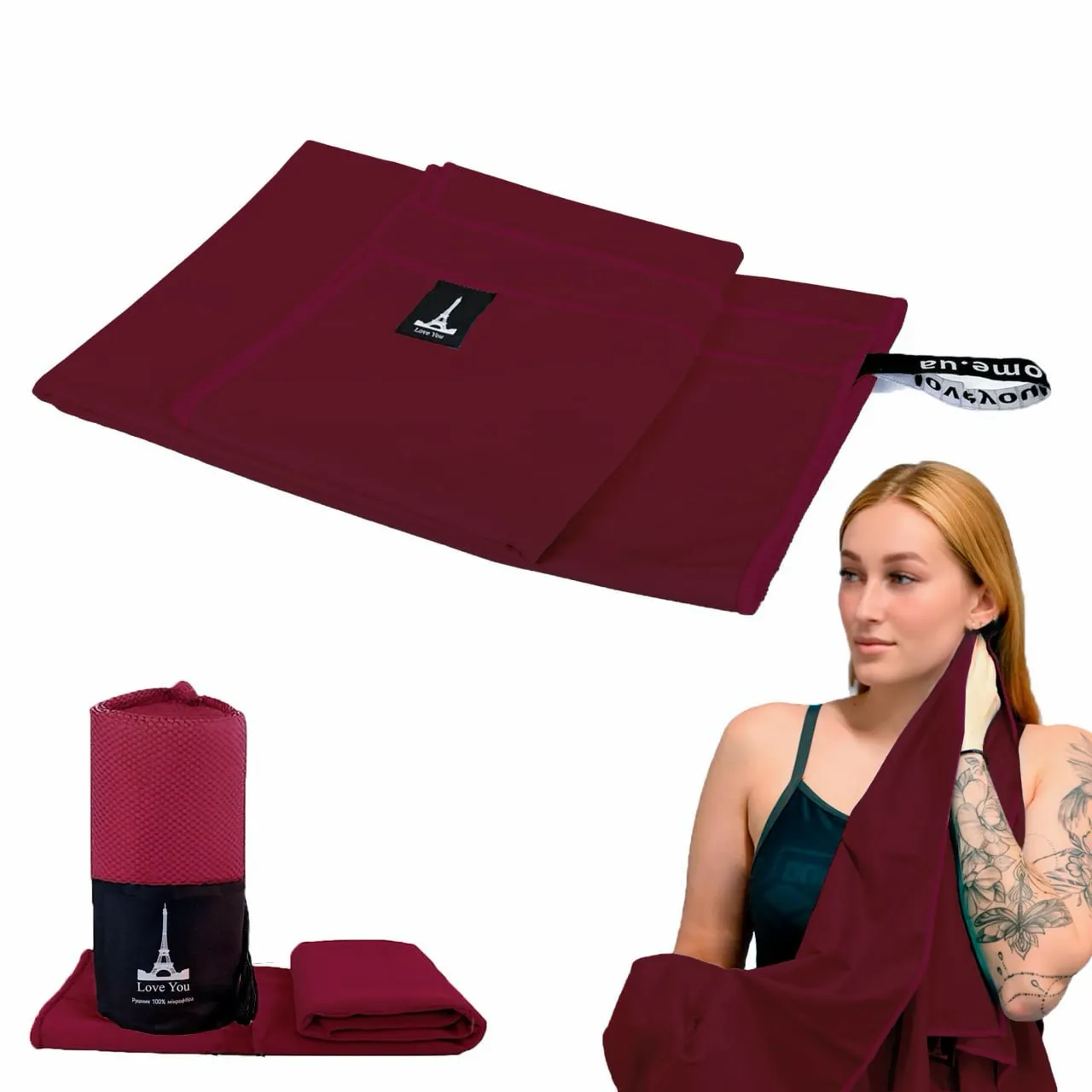 Характеристики "Спортивное полотенце Love You 70x140 из микрофибры Бордо"