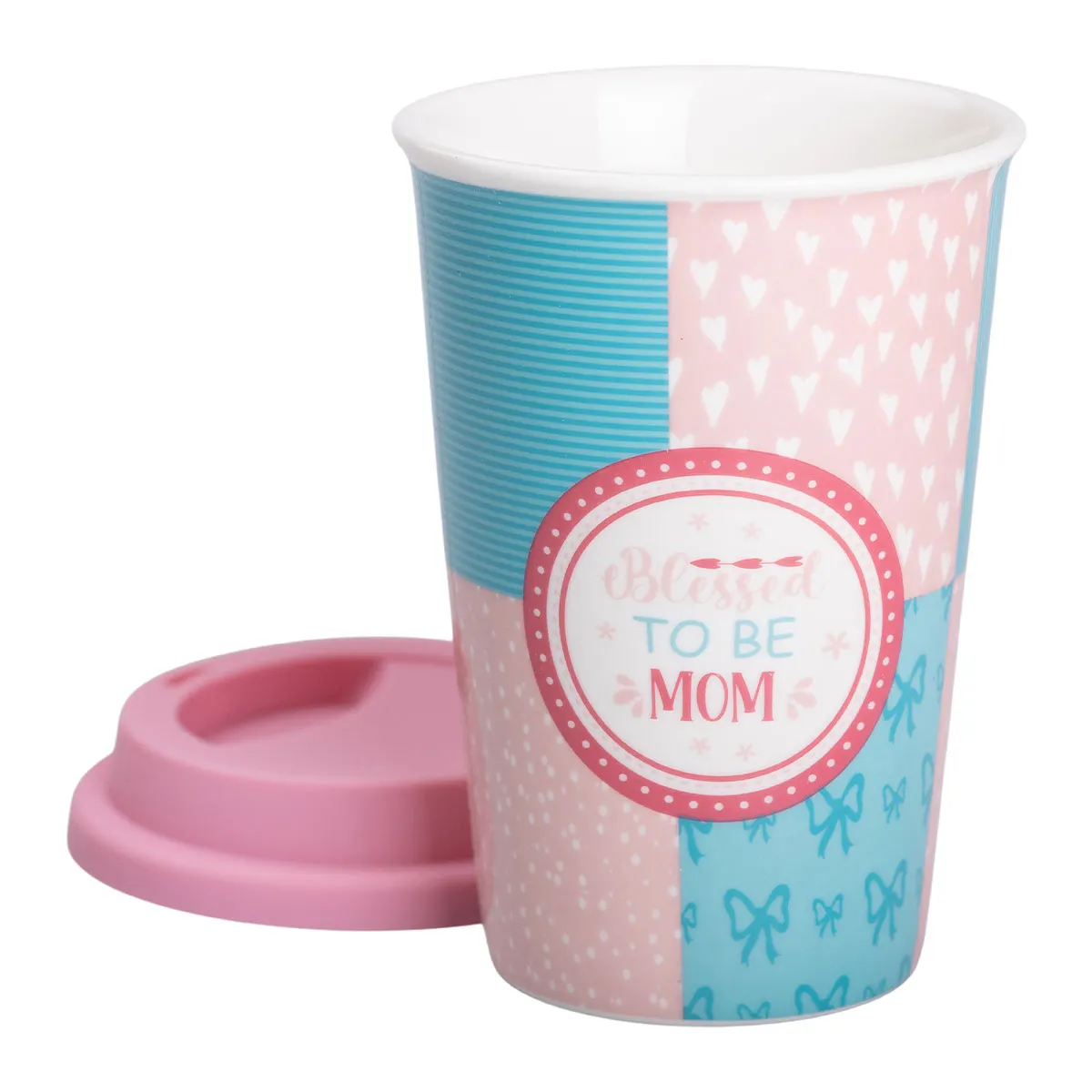 Стакан керамический 420 (мл) с силиконовой крышкой Blessed to be mom RX-N240288BM