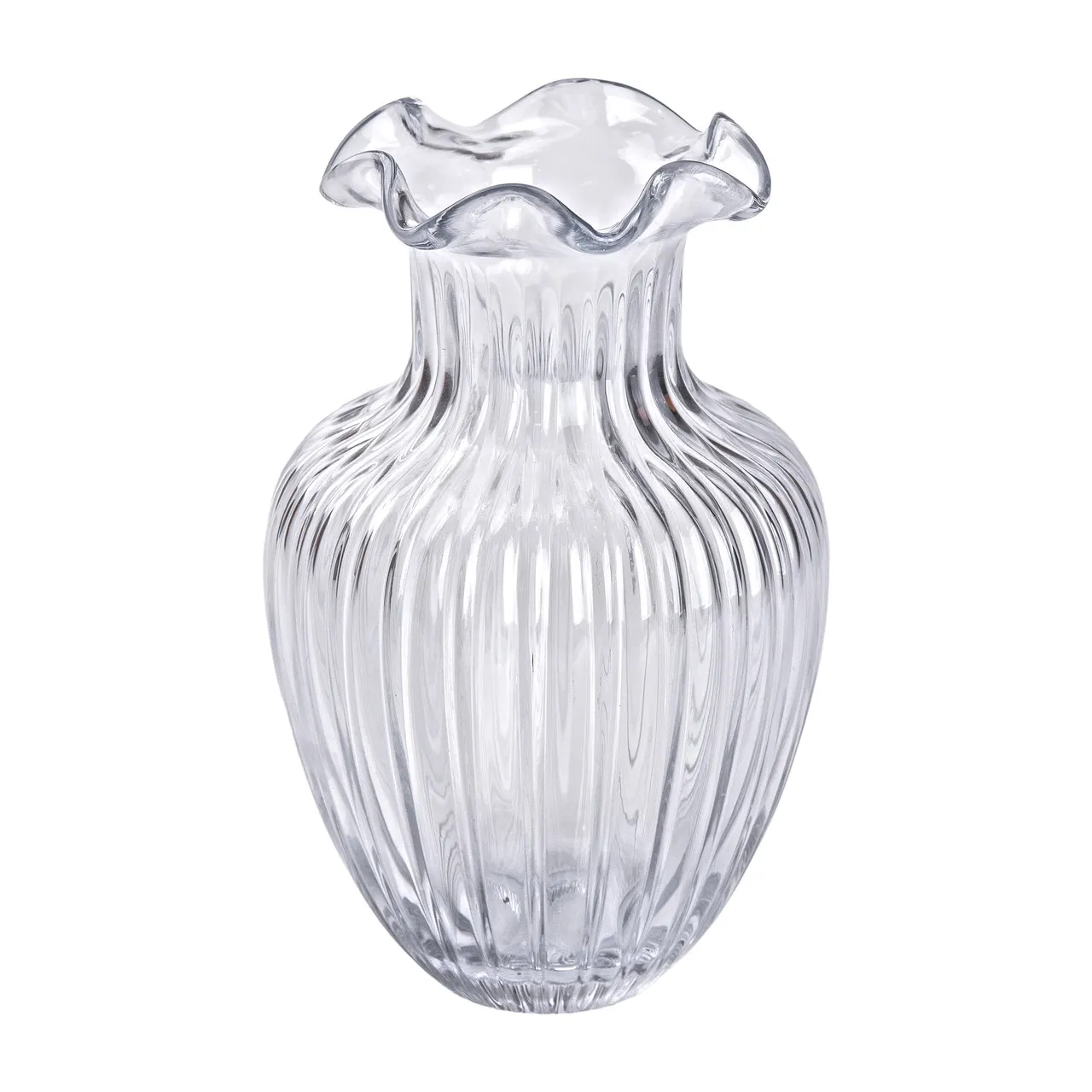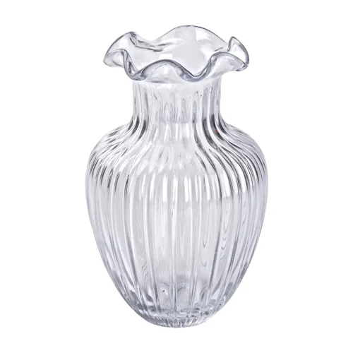 Фигурная форма придаёт изделию выразительность и при этом сохраняет универсальность. Прозрачность обеспечивает возможность видеть стебли цветов, что добавляет дополнительный декоративный эффект. Для длительного использования обратите внимание на качество стекла и отсутствие дефектов.