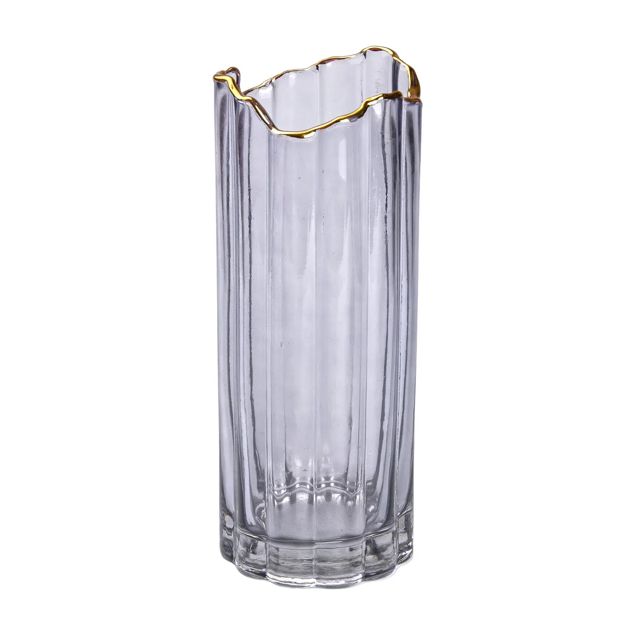 Стеклянная ваза для цветов, декоративная, серая с золотой окантовкой, 30 см HP-1717