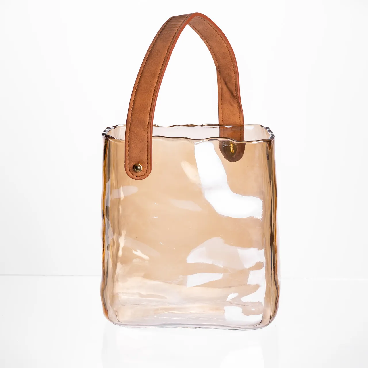 Стеклянная ваза сумочка с ручкой 16×8×18.5 (см) декоративная ваза для цветов 2 (л) Коричневый HP-19-156-1
