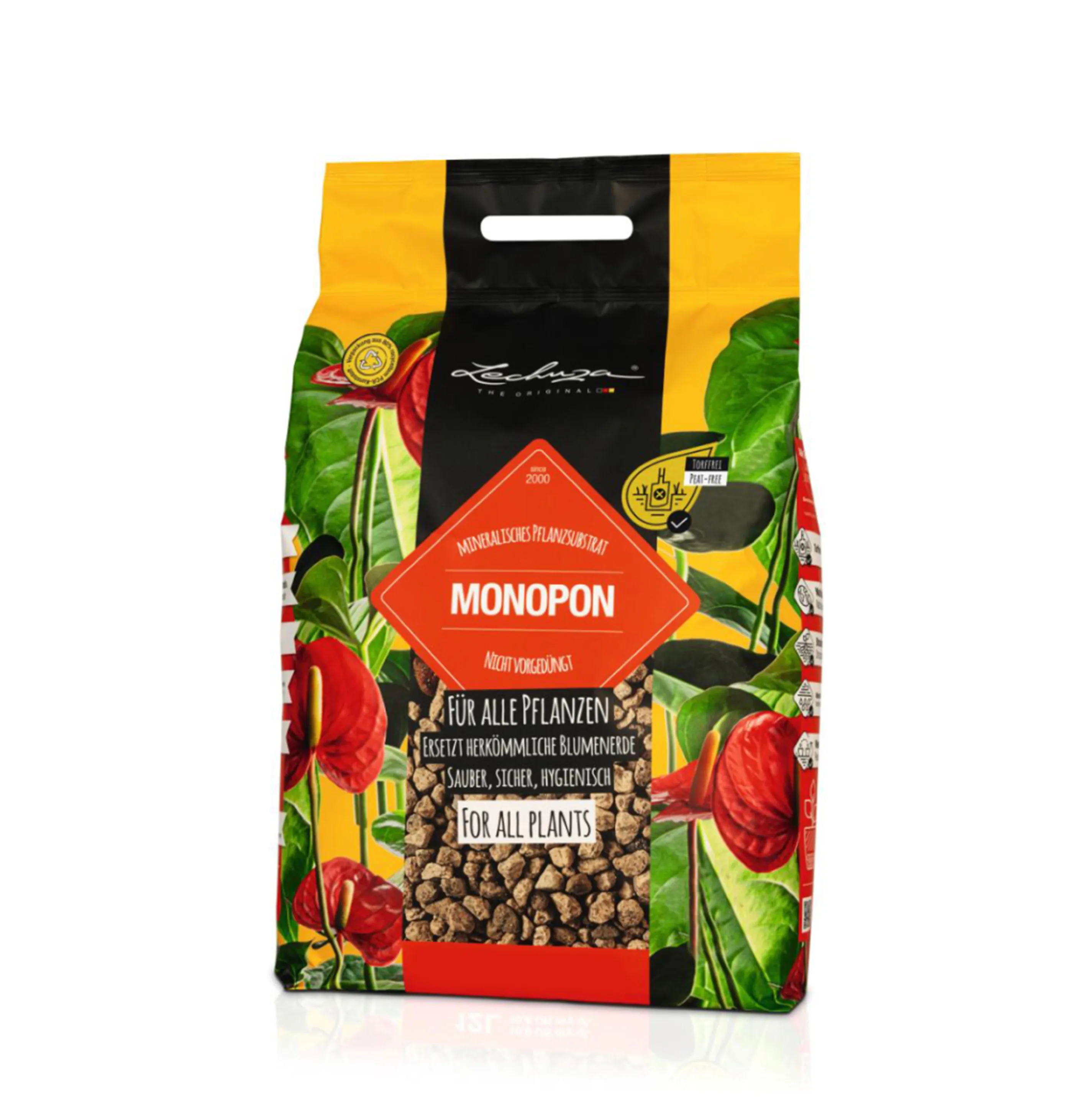 Lechuza MONOPON состоит из высококачественных минеральных ингредиентов, которые не только сохраняют влагу, но и обеспечивают оптимальный дренаж. Это делает его идеальным выбором для любых условий содержания растений.