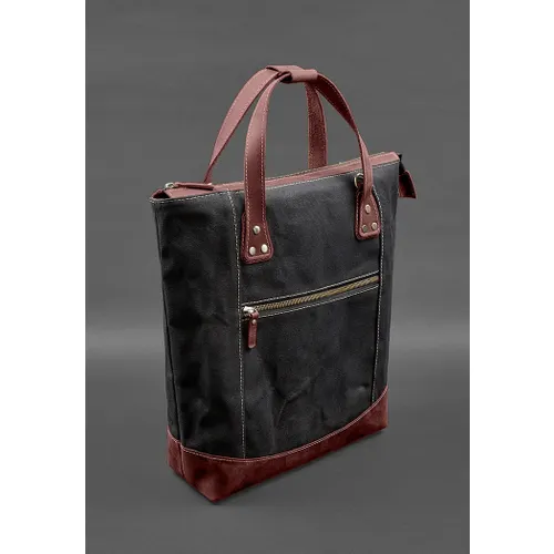 Характеристики "Сумка-рюкзак из канваса и натуральной бордовой кожи"