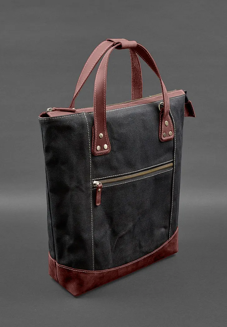 Сумка-рюкзак из канваса и натуральной бордовой кожи