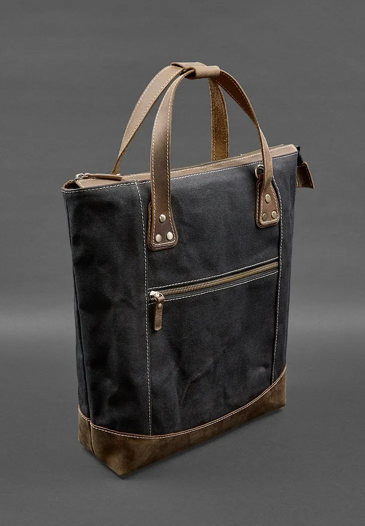 Сумка-рюкзак из канваса и натуральной темно-коричневой кожи