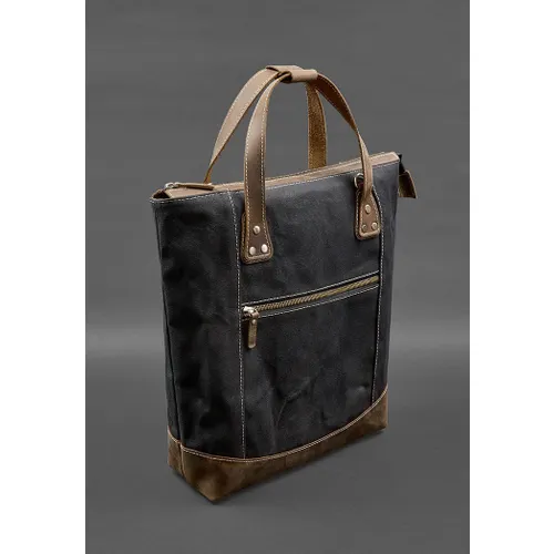 Характеристики "Сумка-рюкзак из канваса и натуральной темно-коричневой кожи"