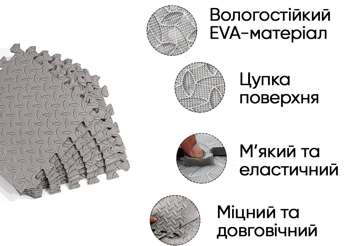 Характеристики "Татами мат EasyFit 8 шт (30х30х1 см) ласточкин хвост серый"