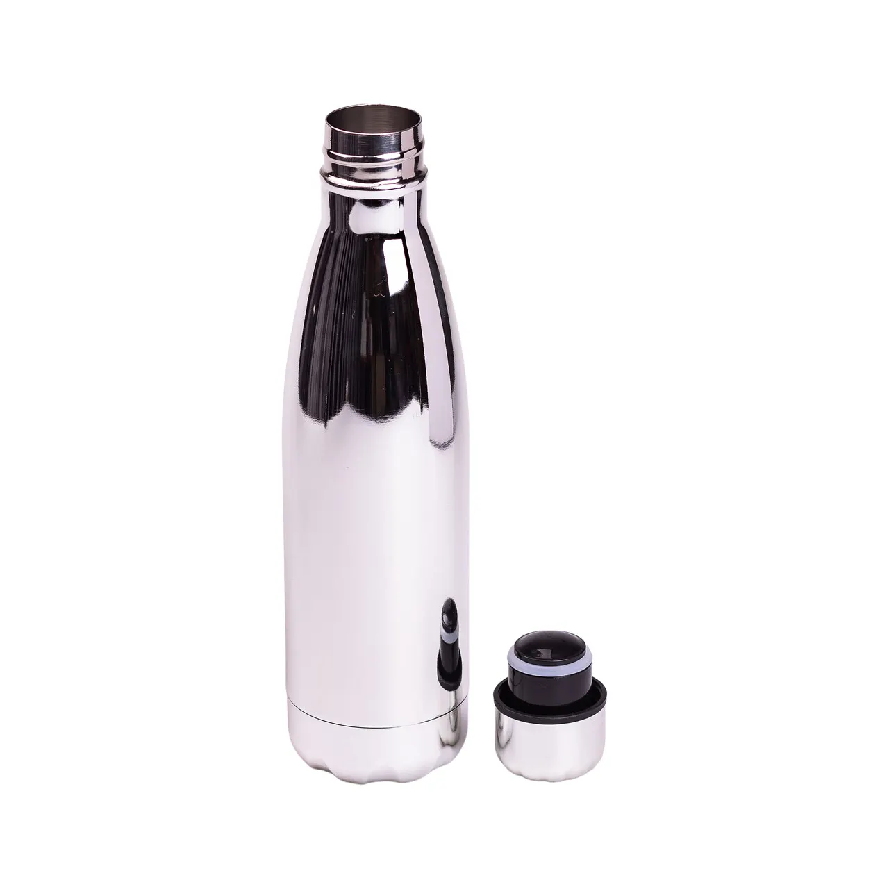 Термобутылка из нержавеющей стали объемом 500 мл представляет собой надежный и удобный аксессуар для хранения напитков с поддержанием температуры. Ее конструкция выполнена из прочного металла с металлликовым покрытием, что обеспечивает долговечность и стильный внешний вид. Благодаря вакуумной изоляции двойных стенок, содержимое бутылки остается горячим до 12 часов и холодным до 24 часов, что делает ее незаменимой в разных условиях.