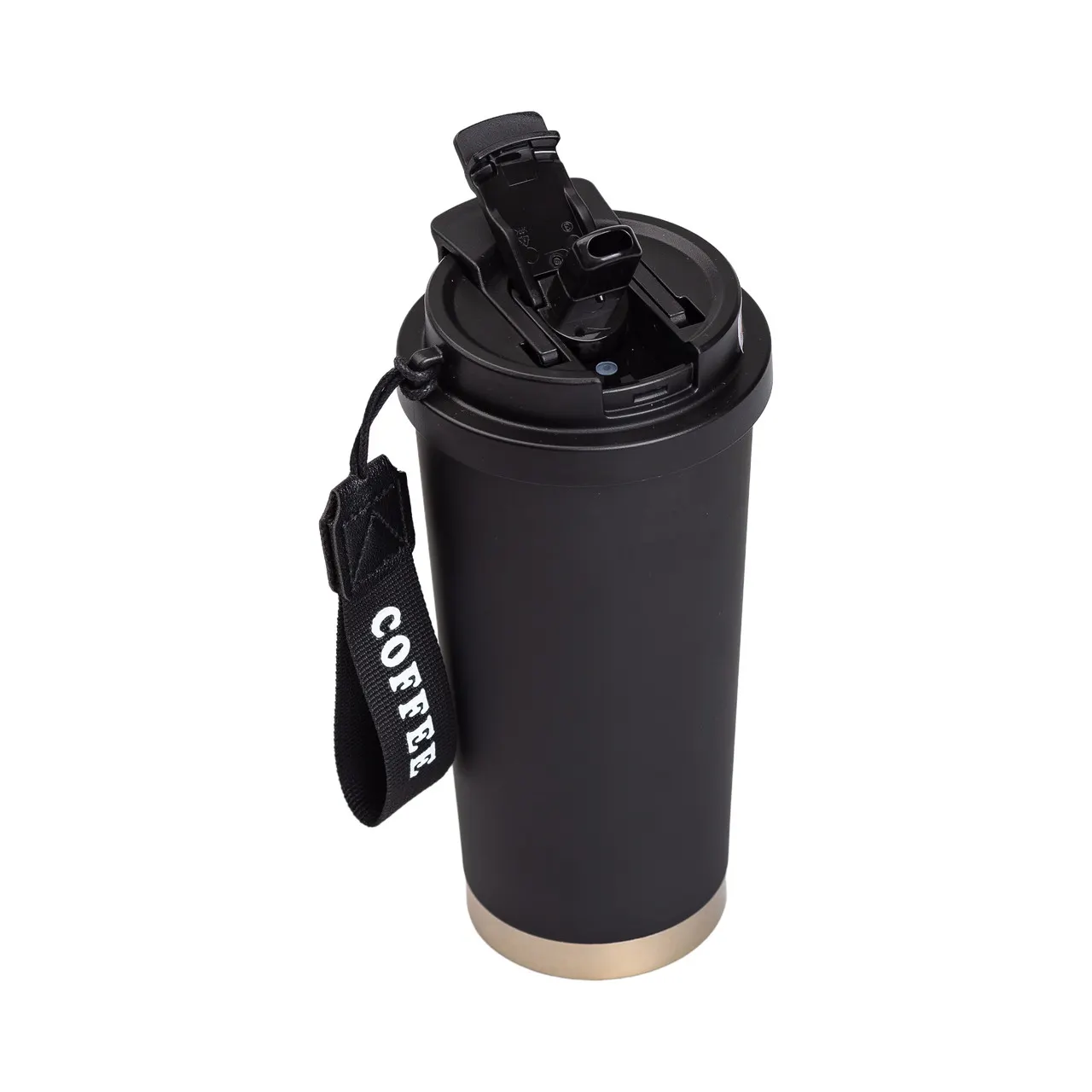 Термокружка Coffee из нержавеющей стали с ремешком 500 мл черная HP-14-17B