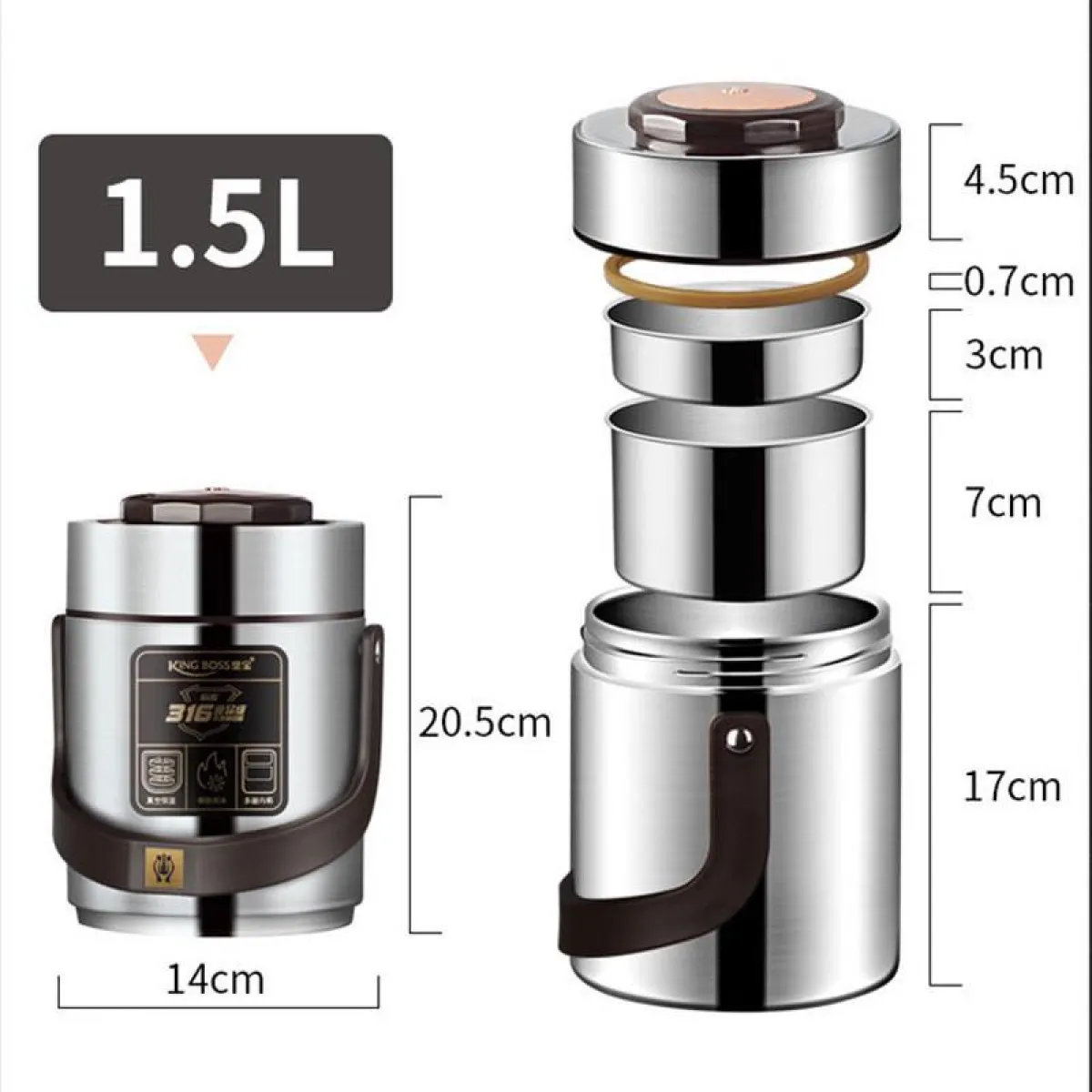 Термос для еды с 2 контейнерами из нержавеющей стали на 1.5 литра — практичный и надежный аксессуар для качественного и удобного питания вне дома. Его преимущества, удобство использования и качественные материалы делают его отличным выбором для любого человека, ценящего здоровье и комфорт.