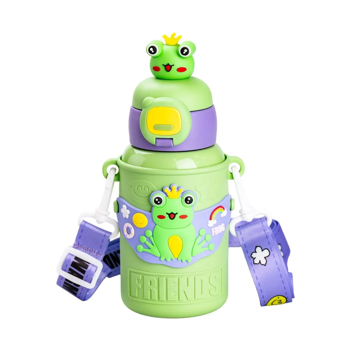Характеристики "Термос поильник для детей с трубочкой с ремешком и силиконовым чехлом детский 450 (мл) Зеленый HP18308GR"