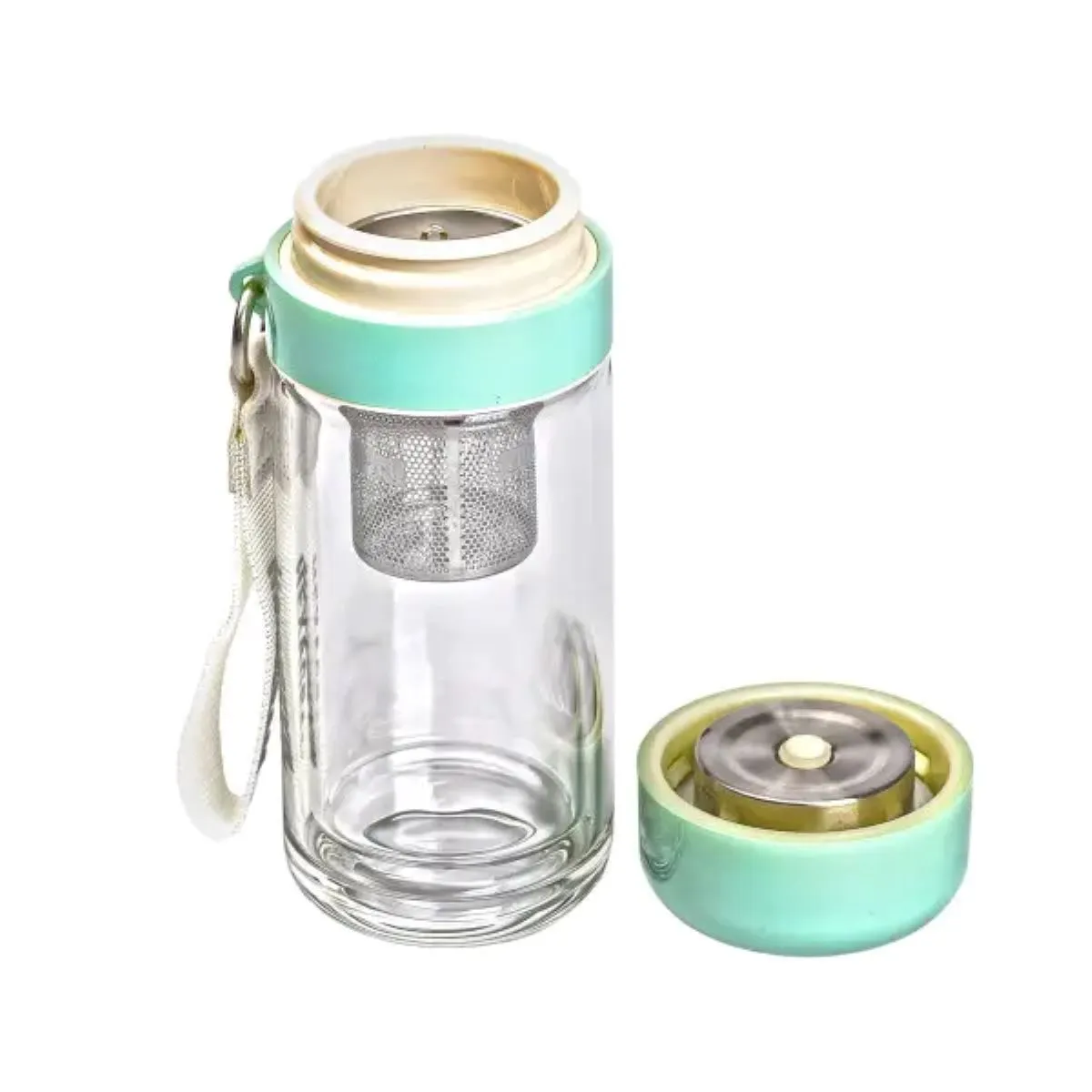 Термос стеклянный Hexagram с двойными стенками и заварником 240 мл мятный HP-14-40M