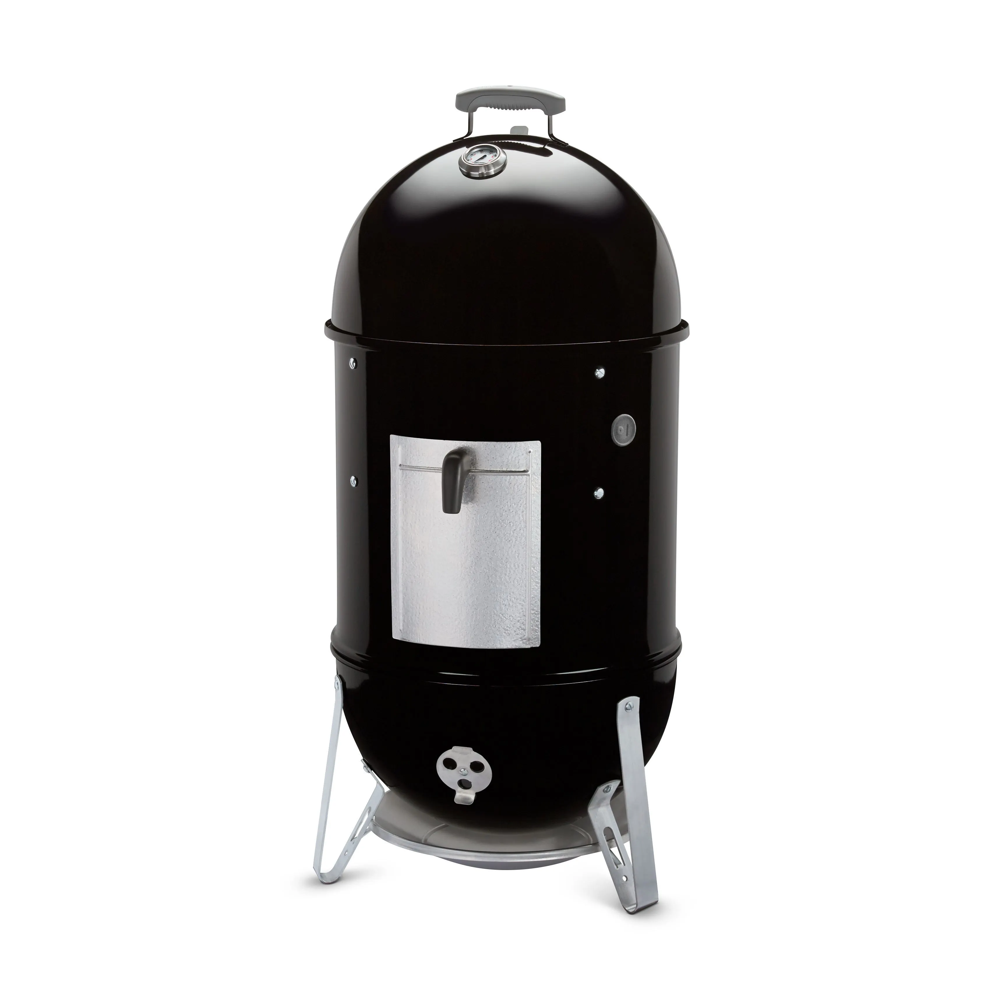 Для удобства пользователя в крышку встроен надежный термометр, который позволяет точно отслеживать температуру внутри коптильни, что крайне важно для правильного процесса копчения. Благодаря наличию порта для щупа термометра есть возможность контролировать внутреннюю температуру продуктов без необходимости поднимать крышку и нарушать температурный режим.