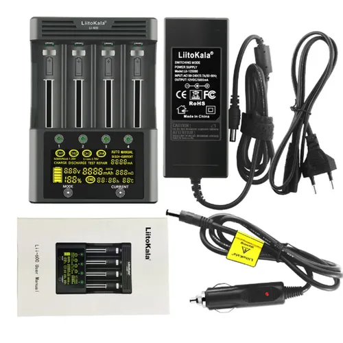 В комплект входят: интеллектуальное зарядное устройство LiitoKala Lii-600, адаптер питания, адаптер для автомобильного прикуривателя и подробная инструкция пользователя, которая поможет быстро освоить функции устройства.