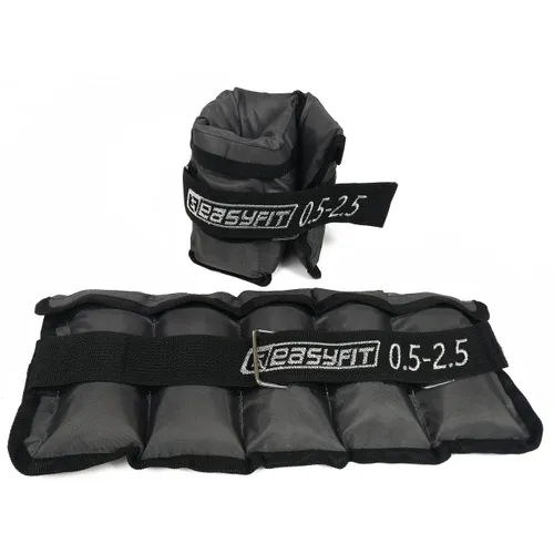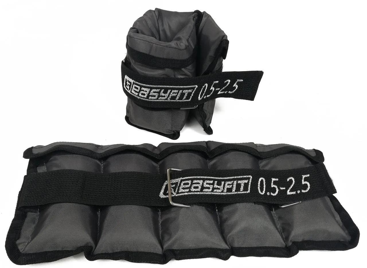 Утяжелители наборные EasyFit с металлическим наполнителем состоят из 5 мешочков по 0,5 кг и манжеты для фиксации на руке или ноге. Это позволяет постепенно изменять вес, выбирая оптимальную нагрузку на тренировках. Изготовленные по новой технологии с использованием стальной гранулы, они более компактные и удобные.