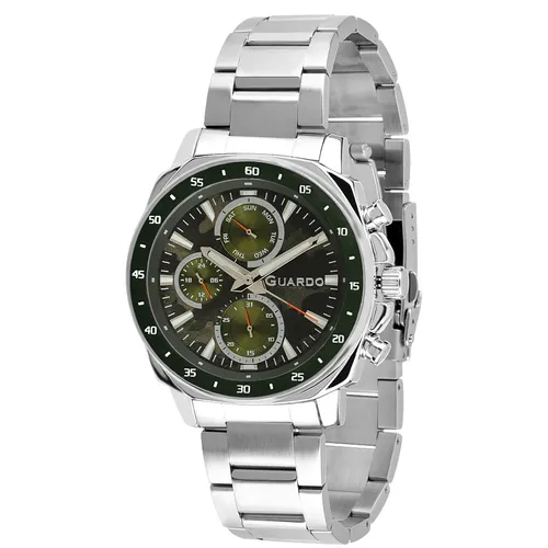 Часы GUARDO 012782-1 представляют собой мужской аксессуар с классическим дизайном и функциональным наполнением. Изготовленные из высококачественной нержавеющей стали, они отличаются прочностью и долговечностью, что делает их надежным спутником на каждый день. Корпус цилиндрической формы диаметром 43 мм и толщиной 12 мм обладает благородным серебристым цветом, который подчеркивает сдержанную элегантность модели.