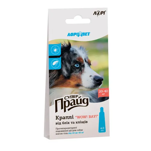 Характеристики "Краплі "WOW! BAY!" "Супер-Прайд" для собак 20-40кг"
