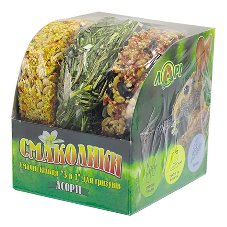 Характеристики "Смаколікі для гризунів Асорті КОЛЬЦЯ Лорі "3в1" (10 упаковок)"