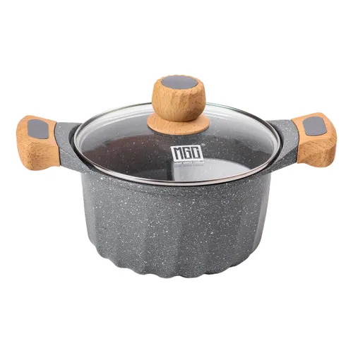 Характеристики "Алюмінієва каструля об'ємом 3 літри з кришкою Ø 20 см. Мармур з антипригарним покриттям MGC сірий HP-4-432G"