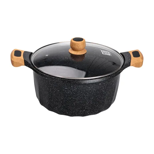 Каструля з алюмінієвого сплаву об'ємом 11 літрів з мармуровим антипригарним покриттям стане надійним помічником на вашій кухні. Діаметр 32 см і висота 21,8 см з кришкою роблять її універсальною для приготування великого обсягу страв, що особливо важливо для сім'ї або заходів. Товсте дно товщиною 5,5 мм забезпечує рівномірний розподіл тепла, запобігаючи пригоранню і дозволяючи готувати з мінімальними витратами енергії.
