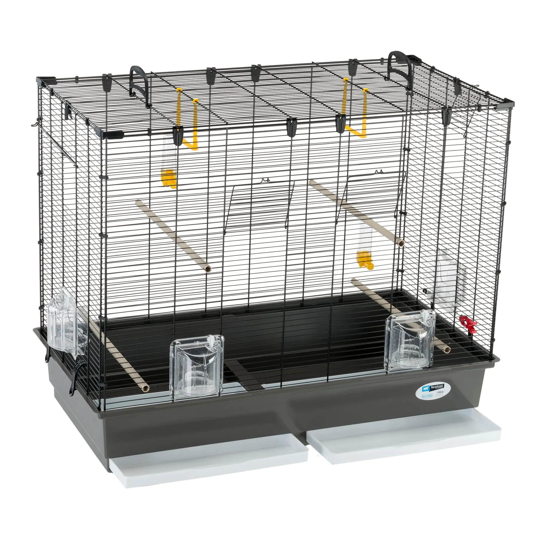 В основі виробу знаходиться великий пластиковий піддон з двома знімними підносами, що значно полегшує процес прибирання. Підноси легко виймаються, дозволяючи швидко та ефективно підтримувати чистоту в клітці без необхідності розбирати всю конструкцію.