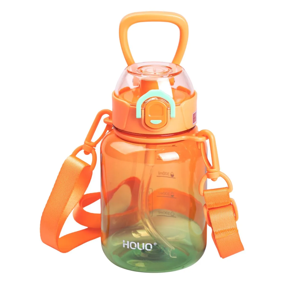 Пляшка для води багаторазова 700 мл пляшечка з трубочкою для спорту та школи 16.5 см Помаранчева HP-14-32O