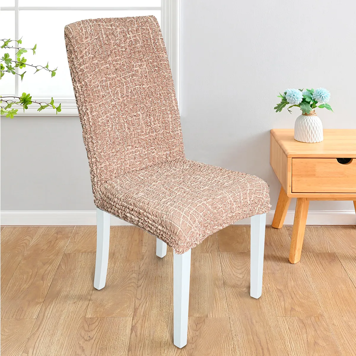 Чохол доступний у різноманітних однотонних кольорах та привабливих візерунках, що дозволяє легко вибрати ідеальний варіант для вашого інтер'єру. Особливістю цього чохла є унікальна гофрована текстура, яка надає стільцю стильного вигляду та забезпечує додатковий захист від пазурів свійських тварин. Гофрована поверхня має пружні властивості, завдяки чому кішки втрачають інтерес до чохла як до об'єкта для точення пазурів. Це запобігає появі затяжок та пошкоджень, зберігаючи ваш стілець у відмінному стані.