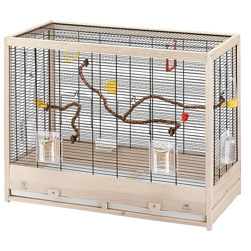 Рекомендується розміщувати клітку в світлому місці без прямого впливу сонячних променів, щоб зберегти деревину та аксесуари у первісному вигляді. Регулярний догляд та прибирання знімних пластикових піддонів допоможуть підтримувати гігієну і здоров’я птахів на високому рівні.