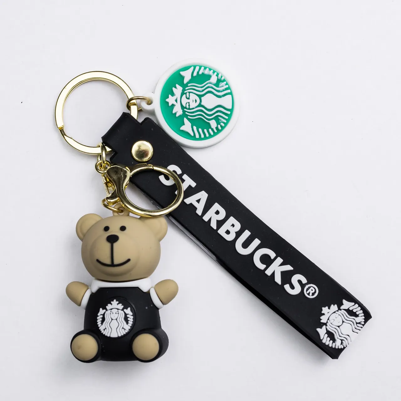 Дитячий брелок Ведмедик Старбакс виготовлений із м'якого силікону, що робить його приємним на дотик і безпечним у використанні для дітей та підлітків. Завдяки якісній металевій фурнітурі аксесуар надійно кріпиться на ключах, сумці чи рюкзаку, забезпечуючи зручність і довговічність при щоденному використанні.