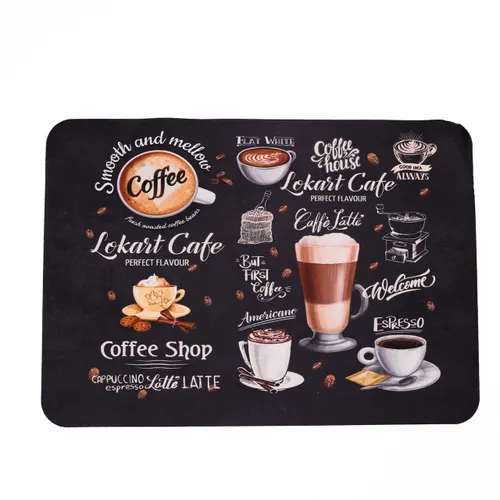 Розміри килимка 50 на 35 сантиметрів оптимальні для повсякденного використання в домашніх умовах. Матеріал стійкий до зносу і зберігає свої властивості та зовнішній вигляд при тривалій експлуатації. Такий килимок допоможе підтримувати чистоту і порядок на кухонному столі, а також знизить ризик пошкодження меблів від крапель води.