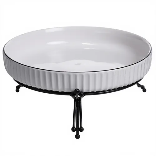 Фруктовниця фарфорова на металевій підставці діаметром 22,5 см — це поєднання вишуканості та практичності, яке ідеально впишеться в інтер'єр сучасної та класичної кухні. Білосніжний фарфор у поєднанні з металевою основою створює стильний та міцний аксесуар для подачі фруктів, салатів та закусок.