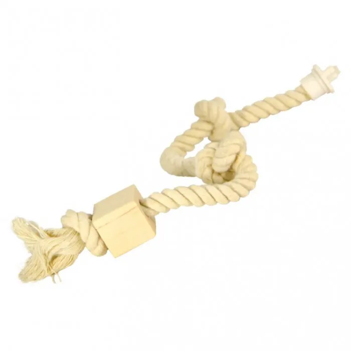 Канат для лазіння з 3 вузлами, виготовлений з натуральної бавовни та дерева, забезпечує безпечну та захоплюючу розвагу для різних видів папуг. Діаметр становить 14 мм, а довжина — 35 см. Зручно кріпиться як усередині клітини, так і зовні завдяки спеціальній пластиковій клямці.
