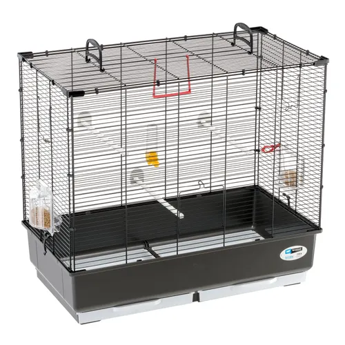 Клітка для канарок, папуг і інших дрібних птахів Piano 5 має розміри 70 x 38 x 62 см, що забезпечує достатньо простору для комфортного розміщення домашніх улюбленців. Металева сітка пофарбована і стійка до корозії, що гарантує довговічність конструкції та збереження зовнішнього вигляду протягом тривалого часу. Конструкція включає куточкові опори та міцні кріпильні затискачі, які підвищують стабільність та безпеку клітки.