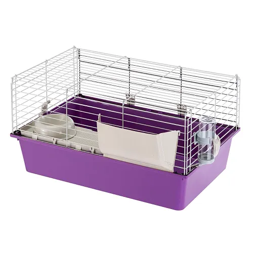 Передні дверцята клітки повністю відкриваються, що дозволяє легко дістати морську свинку або провести ретельне очищення житла. Знімний піддон допомагає оперативно прибирати забруднення, перешкоджаючи затримці запахів і підтримуючи свіжість всередині клітки. У комплекті передбачені важливі аксесуари: поїлка, годівниця для сіна, миска і пластиковий будиночок, які роблять утримання улюбленця більш комфортним і безпечним.