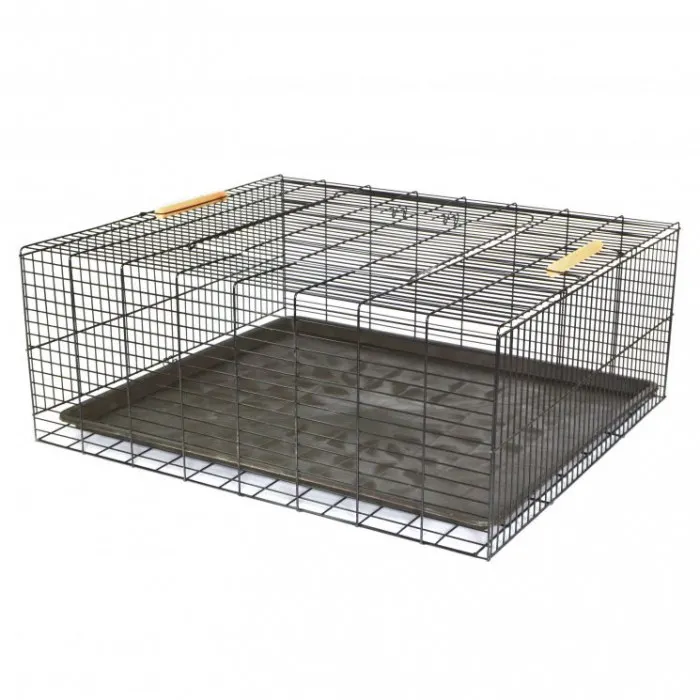 Клітка має нетоксичне покриття, що гарантує безтурботне використання напувати для чуйних тварин. Конструкція передбачає дві ручні ручки для перенесення та дверцят із застібкою зверху, що додають зручності у вікористані.