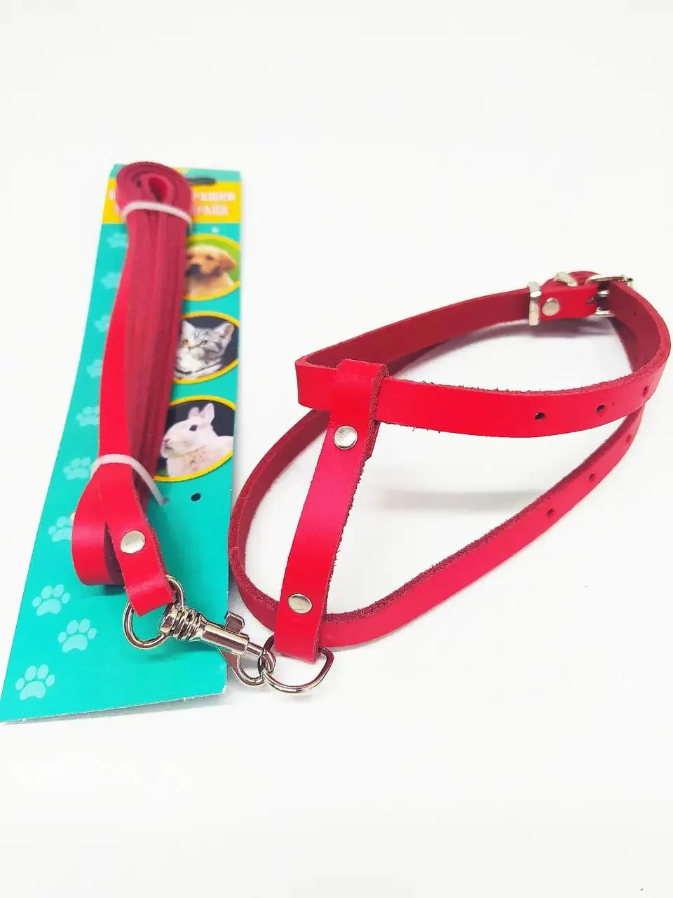 Характеристики "Комплект поводок і шлейка для собак шкіра Червоний"