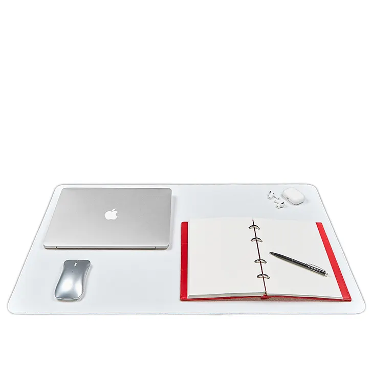 Килимок на робочий стіл 2.0 двосторонній біль уявлень унікальним аксесуаром, що поєднуває у собі практичність та стиль. Він виготувань із двох якихось матеріалів: з одного боку – натуральна шкіра краст білого кольору, з іншого – світлого екора, з іншого світлій еко-фетр з особливою обробкою. Такий дизайн не більше пофарбує естетику вашого робочого місця, але й запізняється комфортну експлуатацію при виконанні повсякденних завдань.