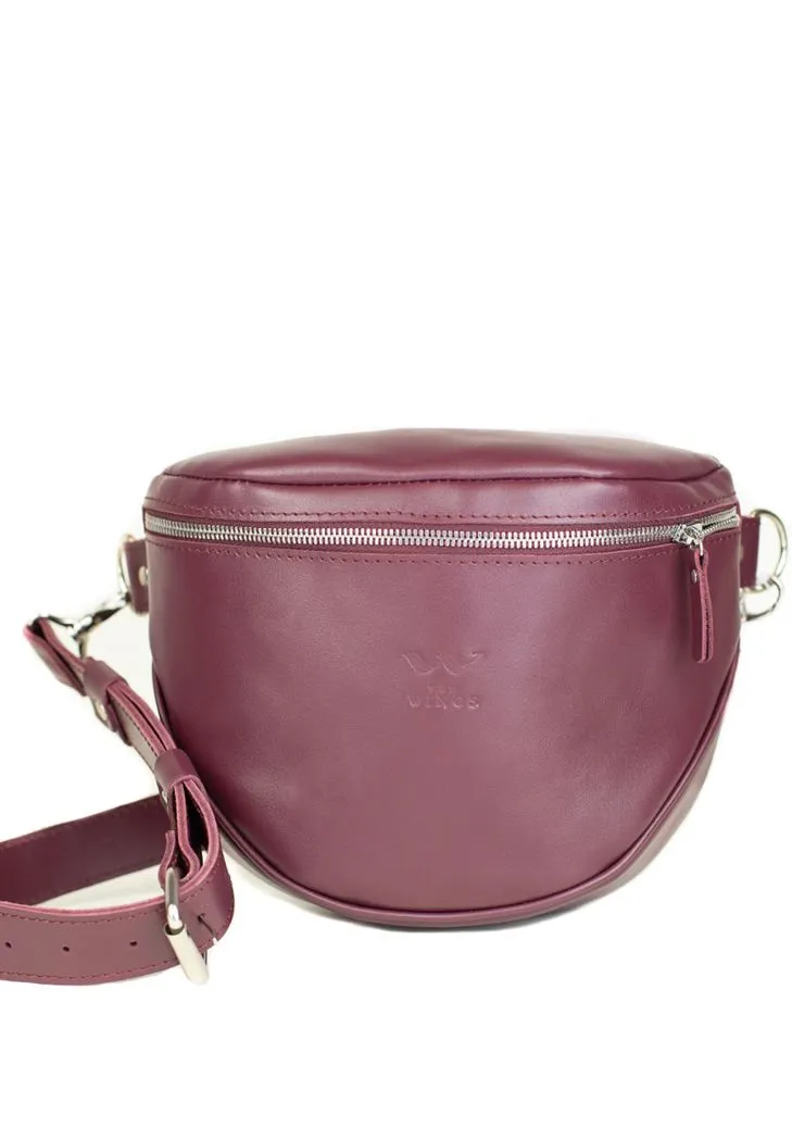 Шкіряна поясна сумка-кросбоді Vacation бордового кольору виділяється високою якістю використаних матеріалів та продуманим дизайном. Вона поєднує в собі практичність класичної поясної сумки та стиль кросбоді, що дозволяє використовувати виріб для різних повсякденних завдань.