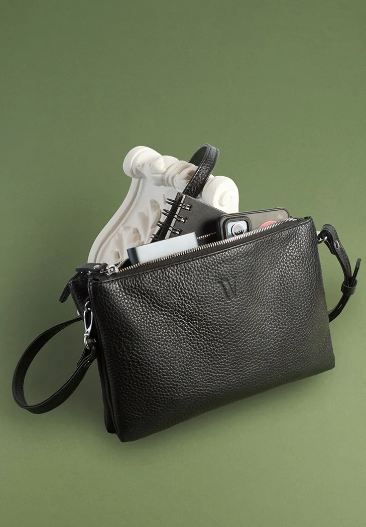 Елегантна та продумана до дрібниць шкіряна сумка Lina — ідеальний вибір для тих, хто цінує порядок, комфорт і стриманий стиль. Компактна форма, чіткі лінії та глибокий чорний колір роблять цю модель універсальним аксесуаром на кожен день.