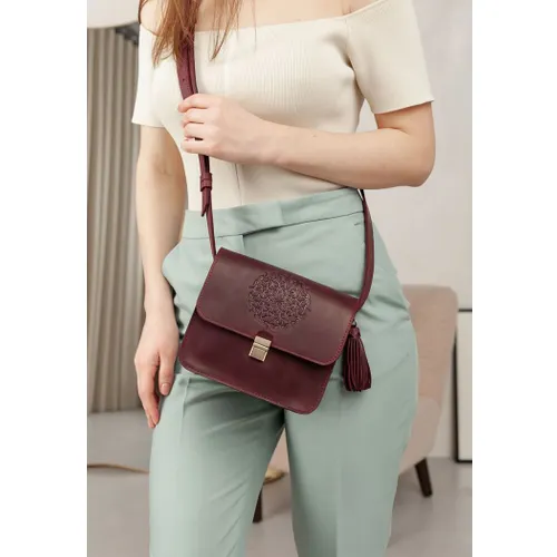 Бохосумка легко поєднується з іншими аксесуарами в аналогічних тонах, такими як бордовий гаманець або взуття. Вона підкреслить індивідуальність і додасть акценту у ваш образ.