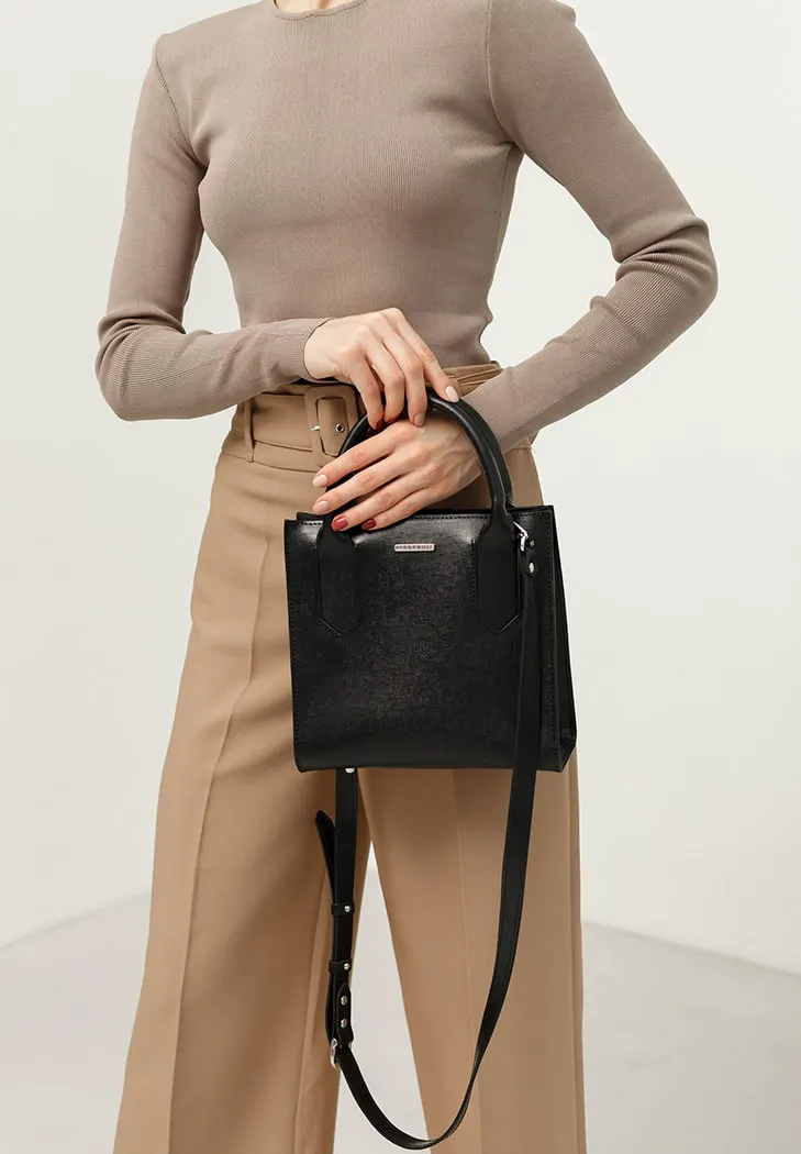Універсальний чорний колір робить сумку придатною для всіх сезонів, а форма кросбоді оптимальна для тих, хто цінує зручність та стиль у кожній деталі.