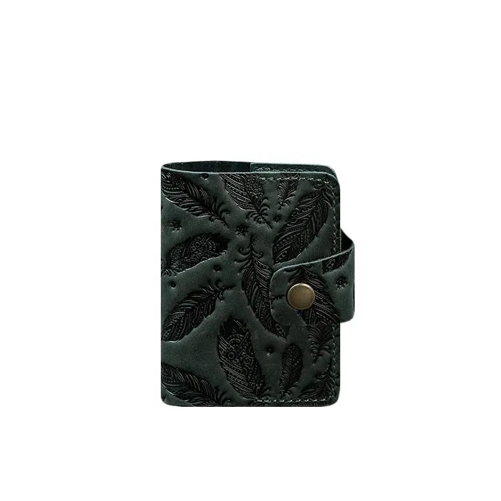 Шкіряний кард-кейс 7.1 (Книжечка) зелений з пір'ям Crazy Horse