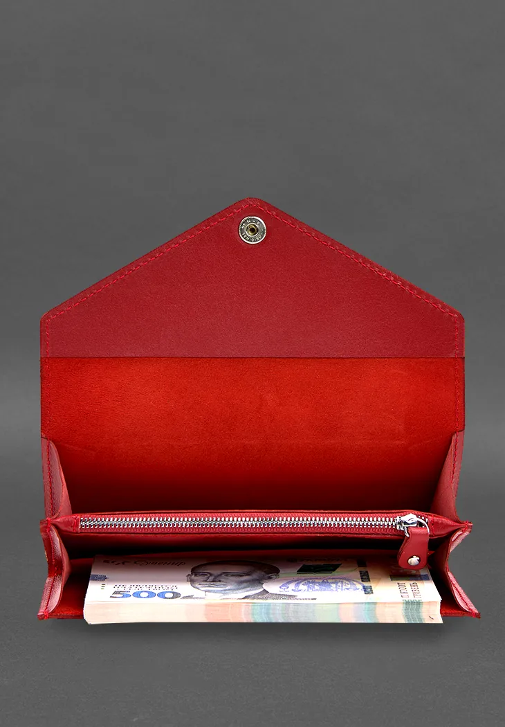 Характеристики "Шкіряний клатч (портмоне) на кнопці 5.0 червоний краст"