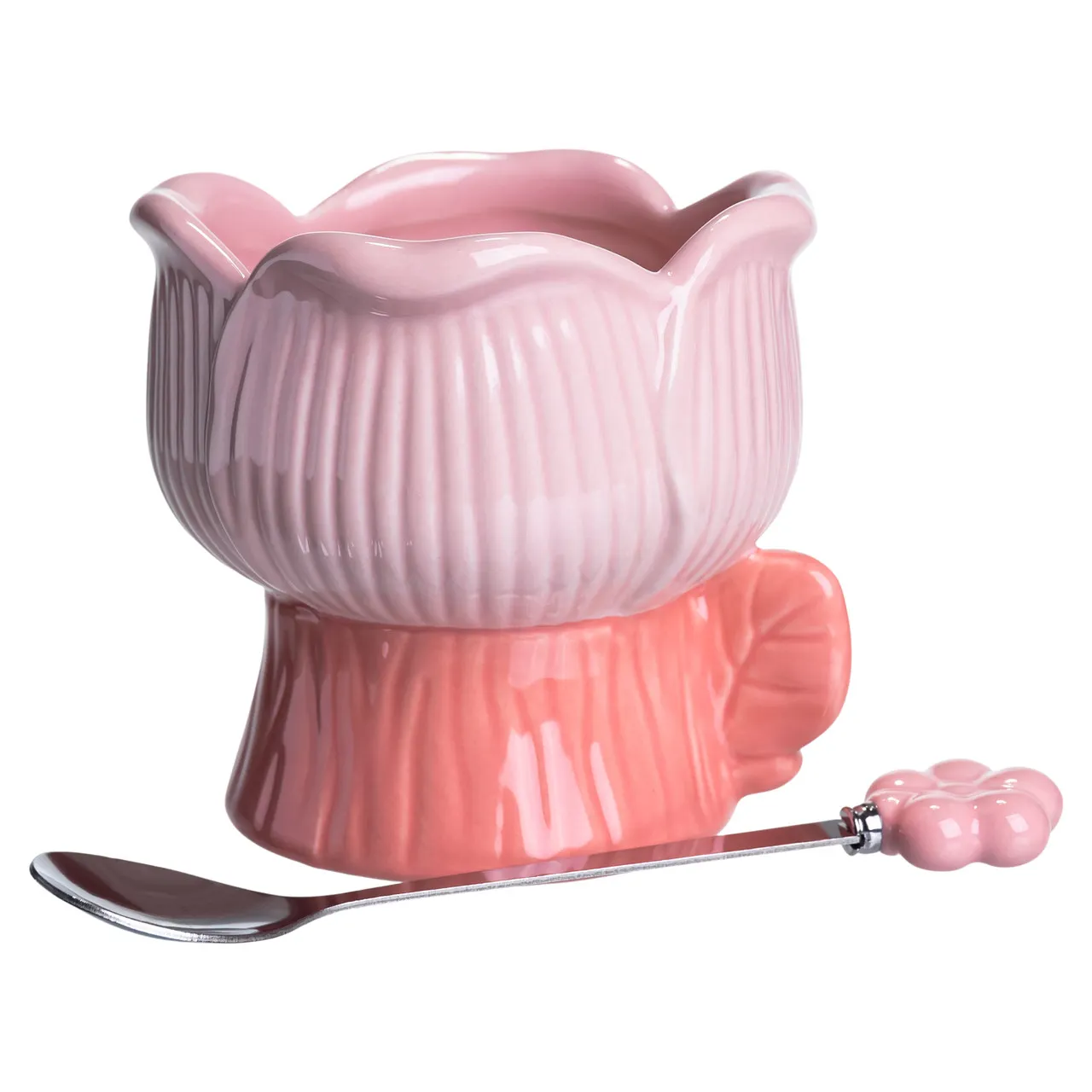 Креманка порцелянова з ложкою у формі квітки 300 (мл) креманка для десертів, морозива та желе Рожевий FM-42P