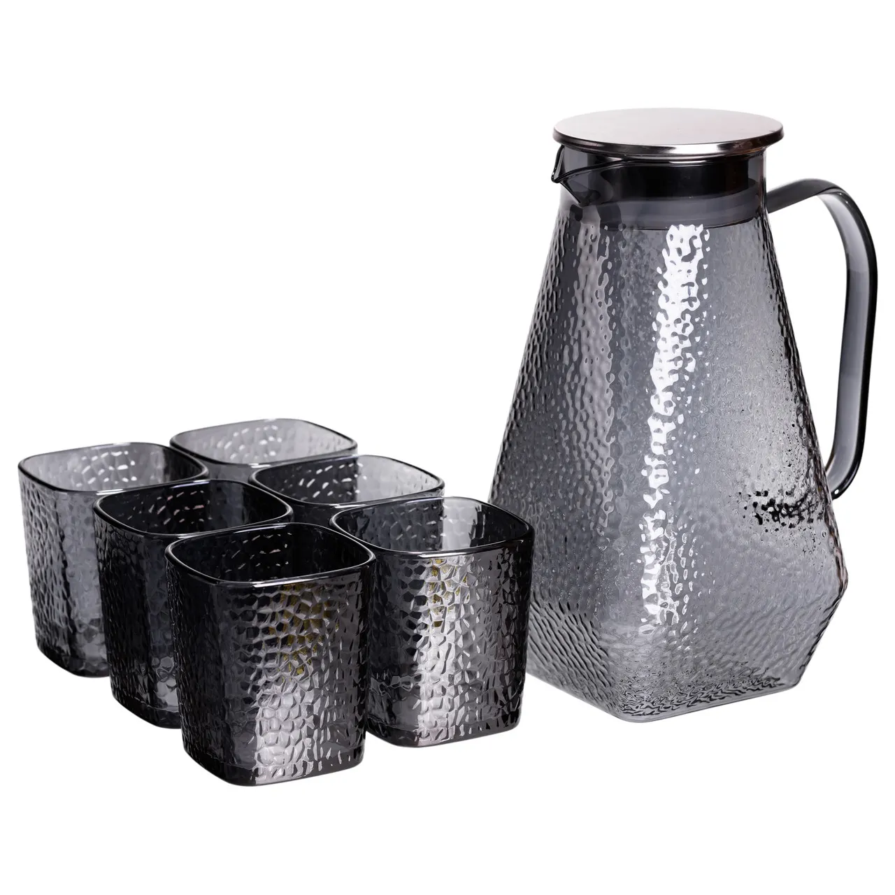 Глечик 1.8 л зі склянками 6 штук по 200 (мл) графин для компоту соку води лимонаду глечик для напоїв Сірий HP-19-38S