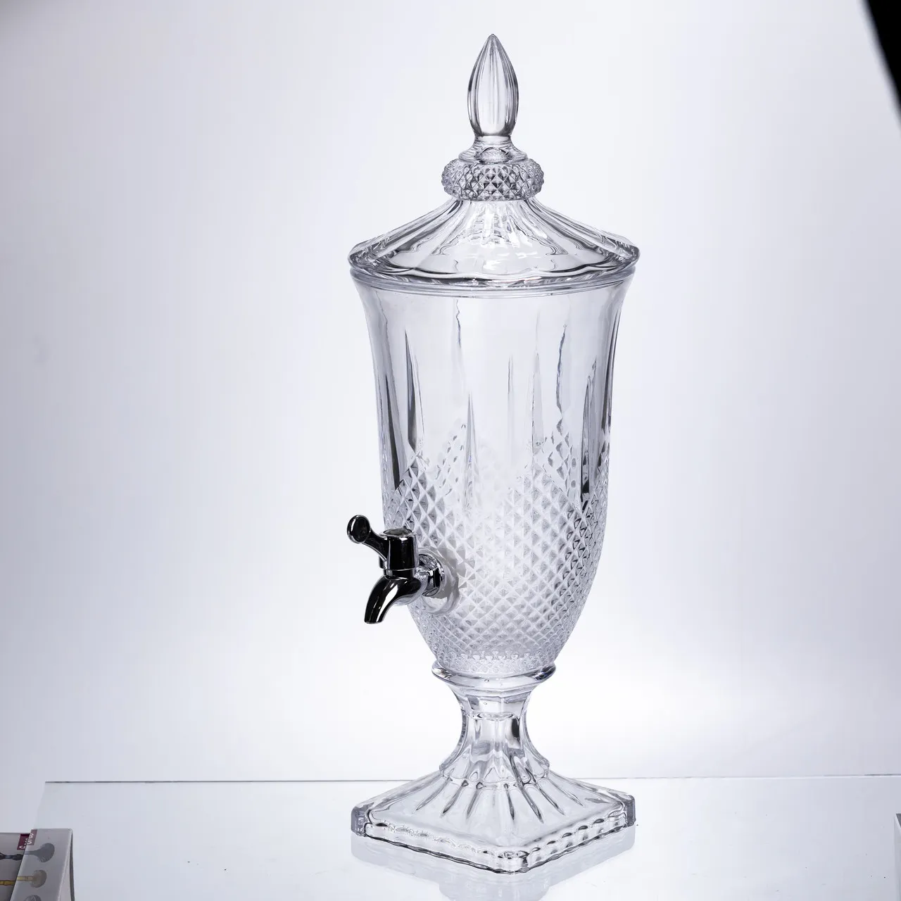 Елегантна лимонадниця з прозорого скла об'ємом 2 літри – ідеальне рішення для подачі напоїв на сімейних святах, фуршетах та пікніках. Особливості: Об'єм: 2 літри - оптимальний для невеликої компанії. Матеріал: скло із декоративною фактурою. Стійка основа та елегантний дизайн – гарно виглядає на столі. Підходить для лимонадів, морсів, компотів, холодного чаю та інших прохолодних напоїв. Рекомендується акуратно мити вручну, щоб зберегти блиск та візерунок скла. Для того щоб користуватися диспенсером довгі роки, слід дотримуватися кількох простих правил: Не використовуйте лимонадницю з гарячими напоями (50°С). Не допускайте різниці температур ємності та напою понад 25°С. Не кладіть лід у порожній диспенсер, охолоджуйте лише сам напій. Характеристики: Матеріал: скло Об'єм: 2 л Діаметр: 17 см Висота: 48 см Матеріал краника: пластик Вага: 2,9 кг