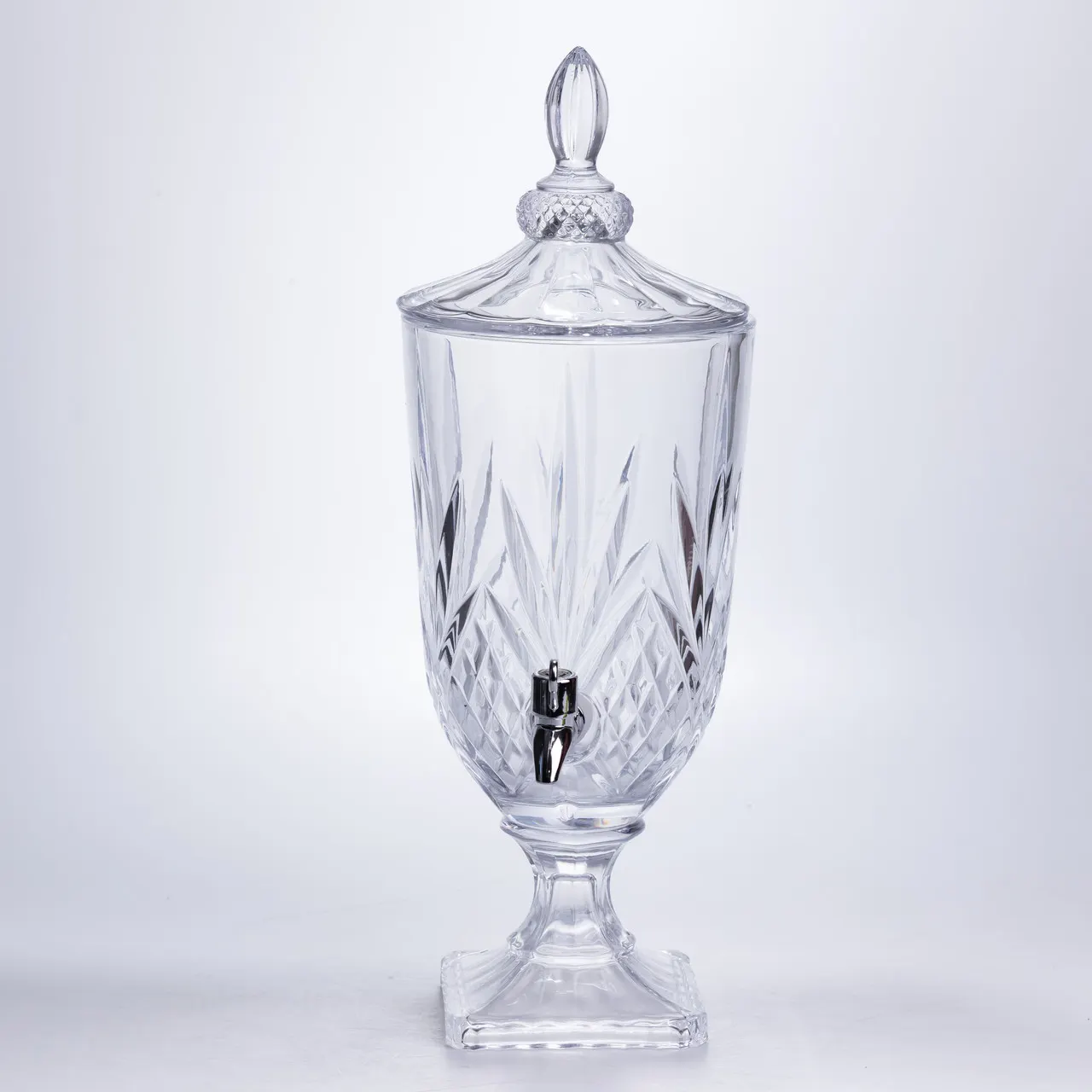 Елегантна лимонадниця з міцного скла ідеально підійде для подавання прохолодних напоїв на святковому столі, фуршеті або в повсякденних умовах. Прозорі стінки надають виробу вишуканого вигляду, а кран забезпечує зручне наливання напоїв. Основні характеристики: Об'єм: 3 л; Висота: 50 см; Матеріал: скло; Верхній діаметр: 17 см. Особливості: Міцне та товсте скло, стійке до подряпин; Рельєфний дизайн надає святкового та вінтажного стилю; Зручний кран для дозування напою; Стійка основа на ніжці; Кришка щільно закривається, захищаючи напій від забруднень і комах. Ця стильна лимонадниця стане не тільки зручним аксесуаром на кухні або столі, але й вишуканим елементом сервірування. Ідеально підійде для подавання напоїв влітку, на святах, вечірках або просто для щоденного використання вдома або в офісі. Зручність, місткість і гарний дизайн роблять її чудовим вибором для кожного будинку.