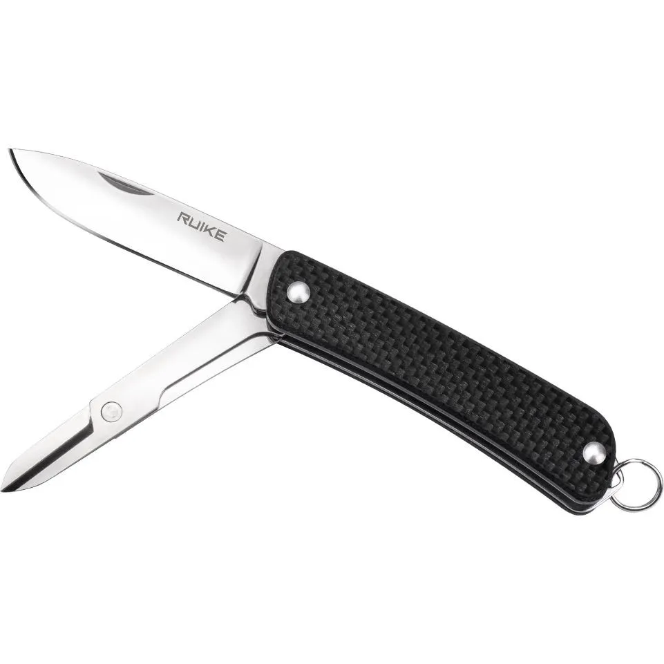 Крім основного клинка ніж Ruike S22 оснащений додатковим інструментом – складними ножицями. Це збільшує кількість завдань, які можна вирішити за допомогою цього ножа, особливо у походах та на пікніках. Замок Slip-joint забезпечує безпечну експлуатацію, запобігаючи випадковому складання клинка.